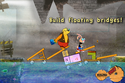 路上同样有各种陷阱坑道,玩家就要使用积木等道具来搭建好桥梁啦,当然,醉熊傻兔可不管这些,它们只管闷头摇晃着前进,摔起跟头来倒是毫不犹豫。