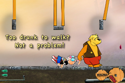 Drunk Rabbit实际上是Lucky Loot公司以前推出的Drunk Bear的续集,这次的主人公是喝多了的兔子和上一版本的醉熊,游戏讲述了他们一起去参加聚会的故事,等他们走到了估计聚会早结束了吧。游戏依然保持了出色的物理引擎,玩家要以安全通过障碍为主,尽可能多的获得酒,得到高分。另外游戏中增加了很多新的内容,期待玩家去发掘。注意:地雷一定要远离,喝多了的 兔子有时候会爬不起来,玩家就要用熊拖着他 继续上路,非常有意思,推荐一下。
