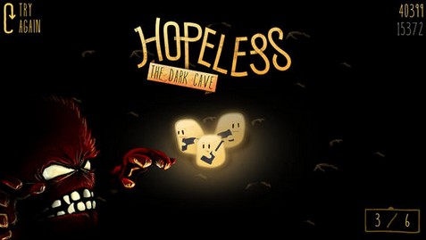 恐怖游戏大多用那些血腥逼真的图像来制造气氛,而在《绝望黑色洞穴 Hopeless: The Dark Cave》中,你看到的却是各种可爱Q版的角色造型。游戏用一种特殊的设定来营造安全感:黄色发光小人在黑暗洞穴中,一个个黑影不断靠近,究竟这个黑影是怪兽还是自己的同类呢?玩家就是要在黑影露头的那一刹那做出判断,是怪兽就开枪,是同类就把他收编。你必须要准确及时地做出判断,否则就会殒身在那绝望的黑色洞穴中。