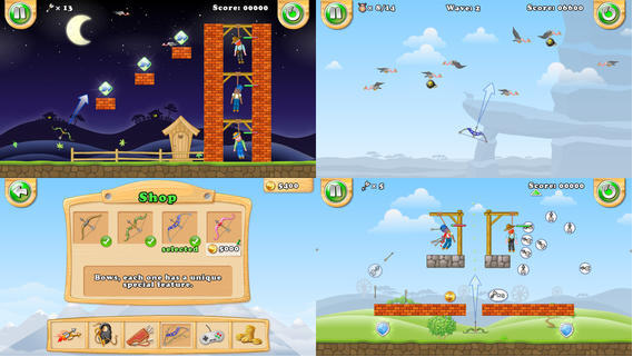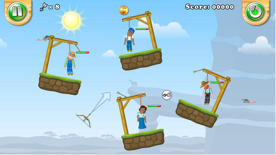 《神射手的世界》是一款玩法类似《愤怒的小鸟》的游戏,玩家控制弓箭,将即将绞刑而死的人们救下来,游戏中有很多道具,比如箭射到特定的符号上会飞向不同的方向。