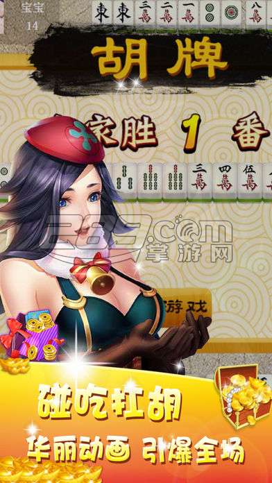 麻将是一种广泛流传的消闲游戏, 其简单有趣, 上手快, 娱乐性强的特点, 受到广大麻将爱好者的亲睐。只需要您将设备与互联网相连接, 不论您是不了解基础知识的新手, 还是资深的高手, 都能够轻松的加入适合的牌桌尽情的游戏。